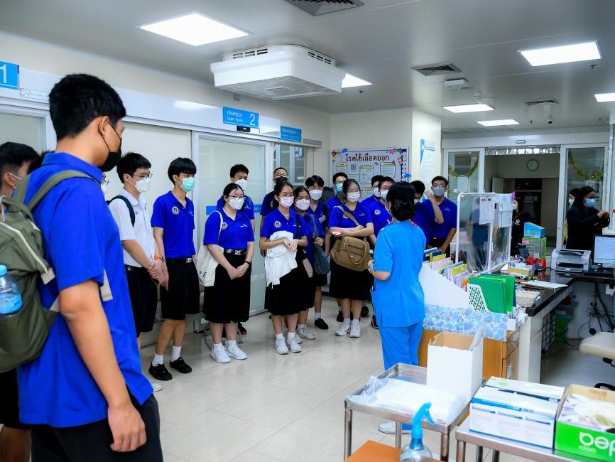 – วันที่ 9 มีนาคม 2566 รศ.นพ.วีระพงษ์ ภูมิรัตนประพิณ คณบดีคณะเวชศาสตร์เขตร้อน มหาวิทยาลัยมหิดล กล่าวต้อนรับ พร้อมด้วย ผศ.ดร.พญ.วิรงค์รอง เจียรกุล รองคณบดีฝ่ายการศึกษาและพัฒนาคุณภาพ และ ผศ.ดร.นพ.สัณฑ์ ม่วงน้อยเจริญ รองผู้อำนวยการโรงพยาบาลเวชศาสตร์เขตร้อน ร่วมให้การต้อนรับ พร้อมทั้งบรรยายกิจกรรมและผลงานคณะเวชศาสตร์เขตร้อน แด่คณะผู้ปกครองและนักเรียนชั้นมัธยมศึกษาปีที่ 5 โรงเรียนมหิดลวิทยานุสรณ์ เนื่องในโอกาสที่มาศึกษาดูงานคณะเวชศาสตร์เขตร้อน เพื่อให้นักเรียนมีโอกาสได้ศึกษาเรียนรู้จากประสบการณ์ตรง ณ สถานที่ต่าง ๆ นอกเหนือการจัดการเรียนการสอนในชั้นเรียน อีกทั้งยังเป็นส่วนประกอบการตัดสินใจเลือกศึกษาต่อและอาชีพที่ตนเองถนัด โดยมี ผู้ช่วยศาสตราจารย์ ดร. นายแพทย์สัณฑ์ ม่วงน้อยเจริญ รองผู้อำนวยการโรงพยาบาลเวชศาสตร์เขตร้อน นำเยี่ยมชมการให้บริการต่าง ๆ ในโรงพยาบาลเวชศาสตร์เขตร้อน