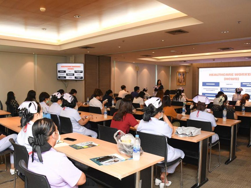 – วันที่ 19 พฤษภาคม 2566 นางพิทยา พิรุณอมรพันธุ์ หัวหน้าหน่วยควบคุมการติดเชื้อในโรงพยาบาล พร้อมด้วย น.ส.พัชริดา พบถาวร นักอาชีวอนามัย หน่วยพัฒนาคุณภาพ และ น.ส.ปิยนันท์ ภักดีวุธ พยาบาลวิชาชีพ ให้เกียรติเป็นวิทยากรในโครงการอบรม เรื่อง “หลักปฏิบัติเพื่อความปลอดภัยในการทำงาน สำหรับพนักงานสถานที่ คณะเวชศาสตร์เขตร้อนมหาวิทยาลัยมหิดล” เพื่อให้พนักงานสถานที่คณะเวชศาสตร์เขตร้อน ได้รับความรู้เรื่องการจัดการขยะ การเลือกใช้ PPE ที่เหมาะสมกับงาน มีความรู้ความเข้าใจการใช้งาน Super Smart Scale และสามารถปฏิบัติงานได้ถูกต้อง รวมถึงมีความตระหนัก ในการเฝ้าระวังป้องกัน เชื้อโรค สารเคมี และวิธีปฏิบัติเมื่อพบเห็น/ประสบอุบัติเหตุในที่ทำงาน ณ ห้องประชุมศรชัย หลูอารีย์สุวรรณ ชั้น 3 อาคารศรชัย หลูอารีย์สุวรรณ คณะเวชศาสตร์เขตร้อน มหาวิทยาลัยมหิดล