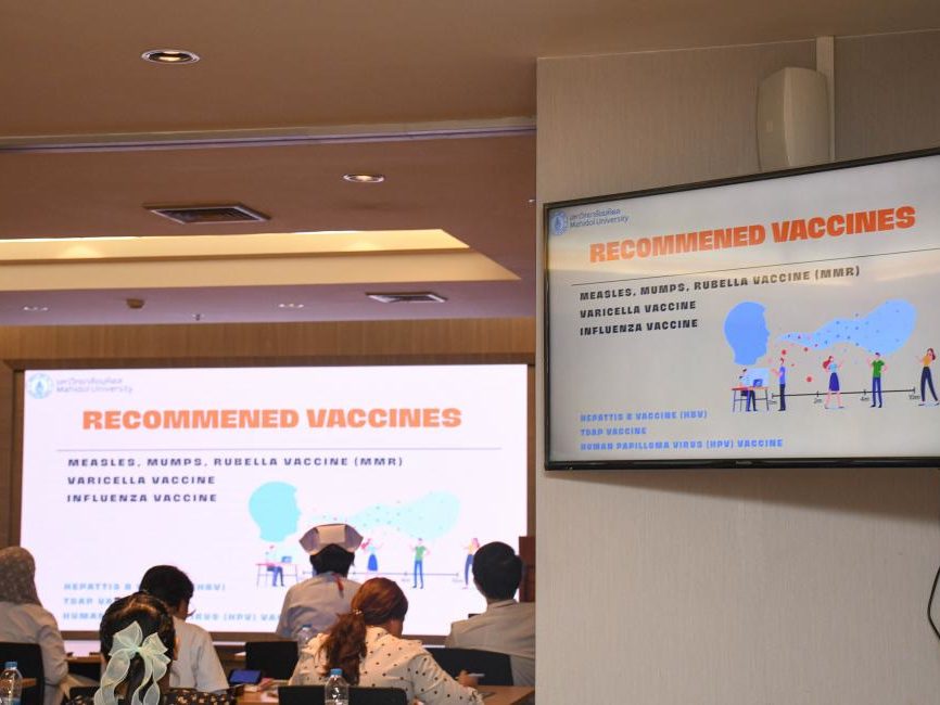 – วันที่ 9 พฤษภาคม 2566 รศ.นพ.วัชรพงศ์ ปิยะภาณี ผู้อำนวยการโรงพยาบาลเวชศาสตร์เขตร้อน เป็นประธานเปิดโครงการอบรม เรื่อง “วัคซีนสำหรับบุคลากรทางการแพทย์” โดยมีการบรรยายเรื่อง “วัคซีนสำหรับบุคลากรทางการแพทย์” บรรยายโดย พญ.พิมพ์พรรณ พิสุทธิ์ศาล อาจารย์ประจำภาคอายุรศาสตร์เขตร้อน คณะเวชศาสตร์เขตร้อน ณ ห้องประชุมประตาป สิงหศิวานนท์ ชั้น 17 อาคารราชนครินทร์ คณะเวชศาสตร์เขตร้อน มหาวิทยาลัยมหิดล