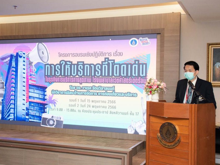 – รศ.นพ.วัชรพงศ์ ปิยะภาณี ผู้อำนวยการโรงพยาบาลเวชศาสตร์เขตร้อน เปิดโครงการอบรมเชิงปฏิบัติการเรื่องการให้บริการที่โดดเด่น ในธุรกิจบริการทางสุขภาพ ครั้งที่ 1 เมื่อวันที่ 15 พฤษภาคม 2566 และครั้งที่ 2 เมื่อวันที่ 24 พฤษภาคม 2566 ณ ห้องประชุมประตาป สิงหศิวานนท์ ชั้น 17 อาคารราชนครินทร์ คณะเวชศาสตร์เขตร้อน มหาวิทยาลัยมหิดล โดยมี ดร.วาเรศ รัตนวิสาลนนท์ นักวิชาการอิสระ ด้านการจัดการท่องเที่ยวและบริการ ให้เกียรติเป็นวิทยากรบรรยายหัวข้อต่าง ๆ ดังนี้ พฤติกรรมผู้รับบริการทางสุขภาพ, เส้นทางของผู้รับบริการทางสุขภาพ, การสื่อสารเพื่อการบริการทางสุขภาพ, แนวคิด ขั้นตอน และเทคนิคในการสื่อสารเพื่อการบริการทางสุขภาพ, วิธีการให้บริการที่โดดเด่นในธุรกิจการบริการทางสุขภาพ