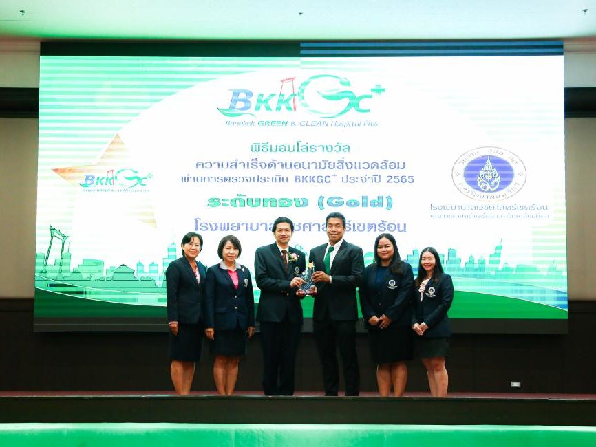 – วันที่ 20 มิถุนายน 2566 รศ.นพ.วัชรพงศ์ ปิยะภาณี ผู้อำนวยการโรงพยาบาลเวชศาสตร์เขตร้อน พร้อมด้วยบุคลากรเข้าร่วมงานรับรางวัลผลการประเมินตามเกณฑ์มาตรฐานอนามัยสิ่งแวดล้อมในสถานพยาบาล Bangkok GREEN & CLEAN Hospital Plus (BKKGC⁺) ประจำปี 2565 ระดับเหรียญทอง มอบโดย รศ.ชัชชาติ สิทธิพันธุ์ ผู้ว่าราชการกรุงเทพมหานคร โอกาสนี้โรงพยาบาลฯ ได้ร่วมจัดแสดงผลงาน Super Smart Scale ณ ห้องบางกอก อาคารไอราวัตพัฒนา ศาลาว่าการกรุงเทพมหานคร ดินแดง